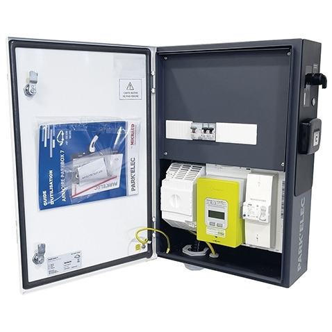Cette armoire intègre le coupe-circuit, le panneau de comptage LINKY® ainsi que le tableau de protection de la borne IRVE.