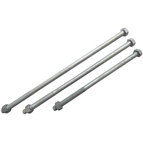 Ensemble vis + écrou en acier galvanisé diamètre 14, longueur 275. S'utilise pour la fixation des accessoires aériens BT.